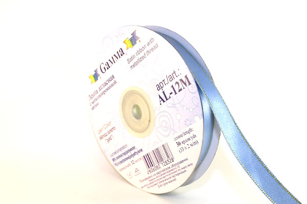 Лента атласная 12 мм двухстор. с металл. нитью "Gamma" №049голубой/золото