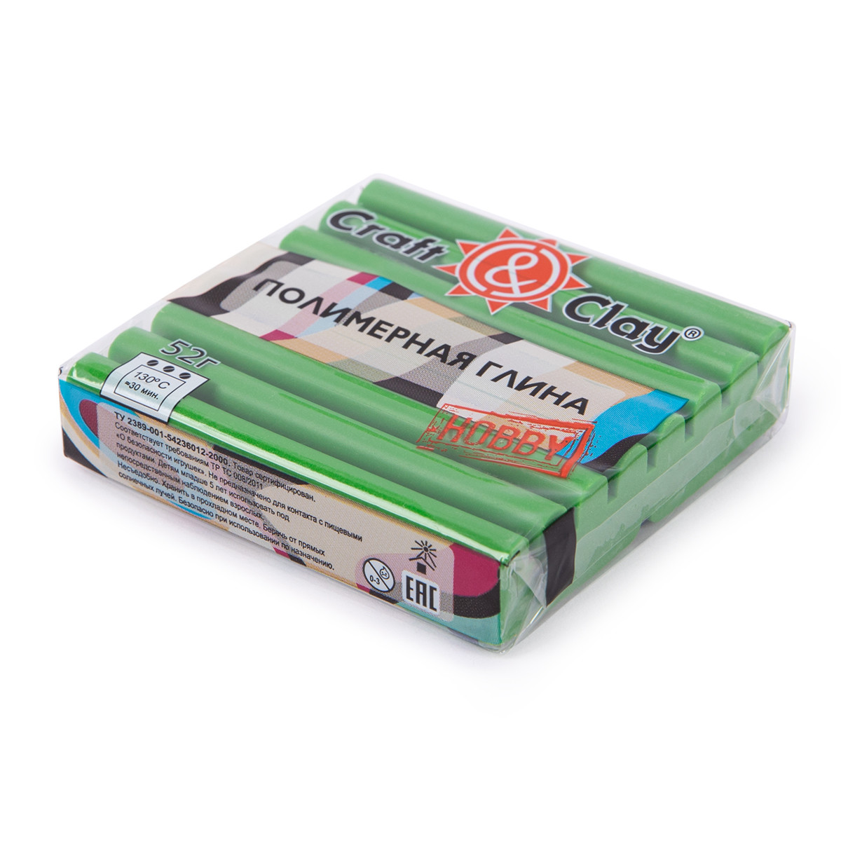 Полимерная глина Craft& Clay, арт. CCH предназначена для моделирования и лепки игрушек, украшений, сувениров, предметов интерьера. Вес одного бруска составляет 52 г. После запекания готовое изделие превосходно держит форму, не боится воды и не выгорает на солнце. Рекомендуем вначале запечь небольшой кусочек глины, чтобы проверить температуру в духовом шкафу. Если при запекании глина трескается, начинает гореть , следует понизить температуру. Если после запекания глина хрупкая , следует повысить температуру. Не трескается. Нетоксично. Запекать 20- 30 минут при 130°C в зависимости от размера изделия. Внимание! Не запекать в микроволновой печи! Сообщить о неточности в описании